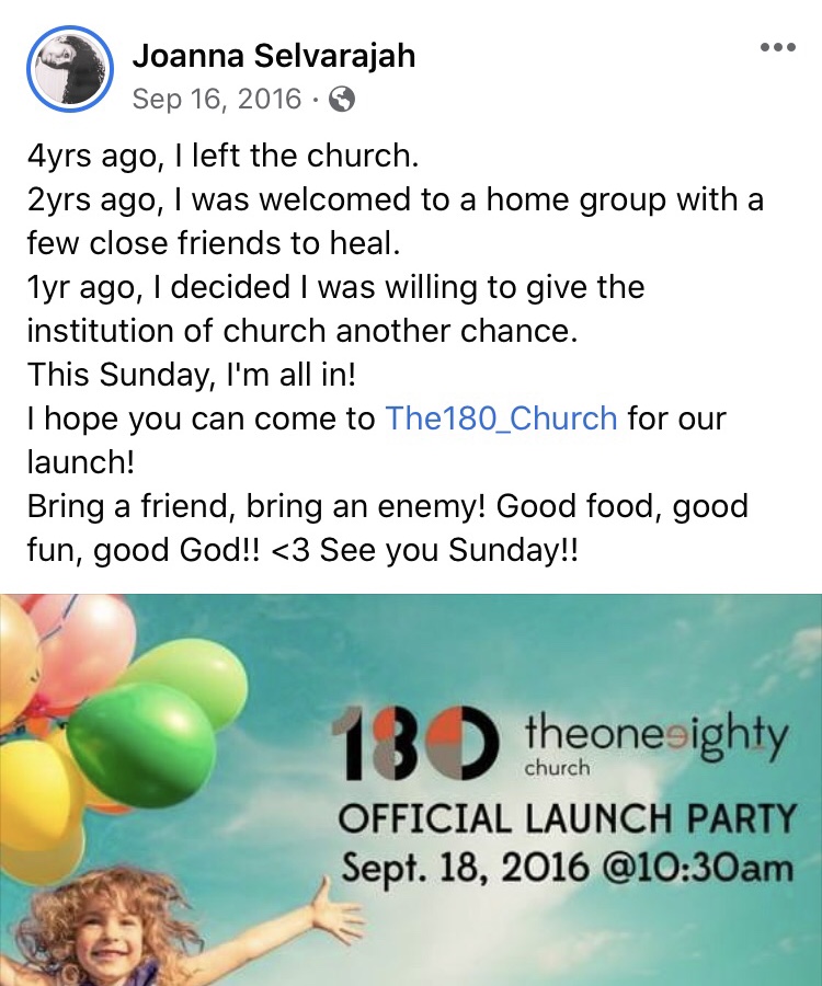 Happy 4 Years to my home, The 180 Church! Thank you for being my compass, for waiting for me at the end of the yellow brick road, for helping me cut off my strings and providing me with a soft place to land after my free fall. I hope I can pay it forward.